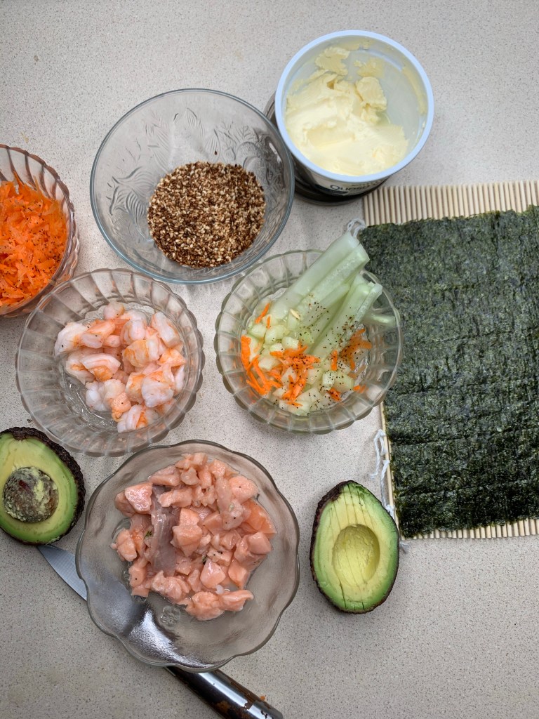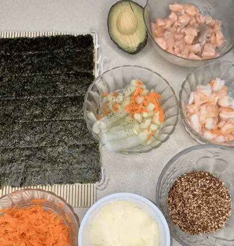 Aquí mi receta de rollitos. Mi recomendación es que la hagan un día que tengan invitados, ( cuando termine la cuarentena será una buena manera de recibir visitas para cenar ) compran varios mats de sushi para tener listo para cada invitado ( son baratos no worries).